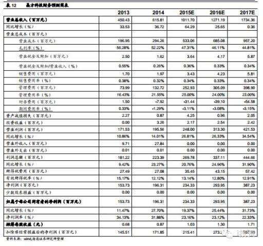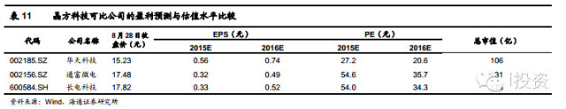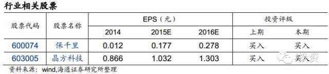 維持“買入”評級。我們預(yù)計2015-2017 年 EPS 分別為 1.03、1.30 和 1.71 元。豪威、索尼等大客戶的訂單向中國大陸轉(zhuǎn)移,公司的 12 英寸晶圓級 CSP 封裝在全球率先量產(chǎn),我們估計 2015 年開始 12 英寸對利潤的貢獻將更明顯,將開啟未來 2~3 年的快速成長期,另外雙攝像頭如果成為行業(yè)趨勢則將使得市場空間增加 50%,所以公司可以享受一定的估值溢價,我們給予公司 2015 年 45 倍 PE,目標(biāo)價 46.35 元,維持“買入”評級。