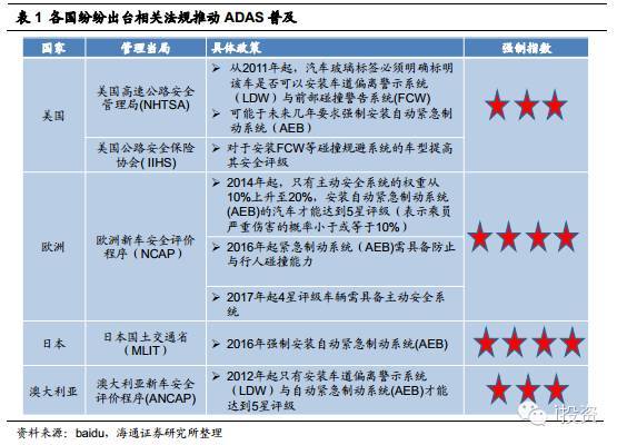 各國紛紛出臺相關(guān)法規(guī)推動ADAS 普及