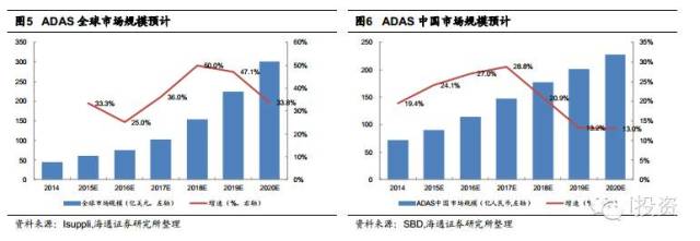 因此,我們認為 ADAS 系統(tǒng)將在全球與中國迅速鋪開,到 2018 年市場規(guī)模將達到178 億人民幣,2014 至 2018 間 5 年復(fù)合增長率 25%,并且隨著產(chǎn)業(yè)轉(zhuǎn)移以及內(nèi)地安全追趕和技術(shù)追趕步伐加快,預(yù)計 2020 年之后增長率將會超過 30%。