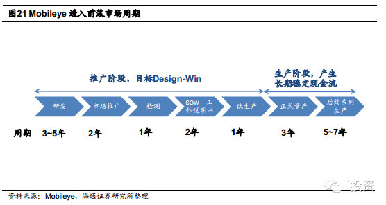 但另一方面,一旦成功進入某類車的前裝市場,就意味著隨后幾年銷量的保證。除非發(fā)生一些重大的技術(shù)變革或事件,否則供應(yīng)商將很難被替換。供應(yīng)商的先發(fā)優(yōu)勢明顯。比如 Mobileye 從研發(fā)到生產(chǎn)一共經(jīng)歷了 8 年才得到市場認可進入前裝市場,但這反過來又成為 Mobileye 最大的競爭優(yōu)勢之一,其他競爭對手必須經(jīng)歷相同的周期才可以與Mobileye 競爭。