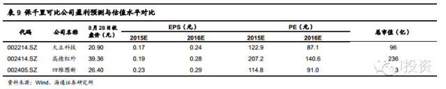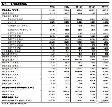 維持“買入”評級。我們預(yù)計公司在 2015/2016/2017 年凈利潤分別為 3.99/6.27/9.43億元,分別同比增長 1412.01%/56.90%/50.40%, EPS 分別為0.18/0.28/0.42 元。保千里在主動式近紅外夜視市場國內(nèi)目前沒有競爭對手,有望成為中國汽車智能輔助駕駛領(lǐng)域絕對龍頭企業(yè),未來成長空間巨大,可以享受估值溢價。一年期市值空間我們看到627 億(16 年 100X),對應(yīng)股價 28.0 元。