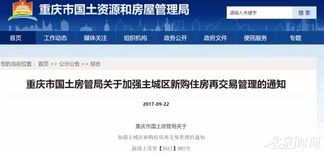根據(jù)重慶市國土房管局發(fā)布的《關(guān)于加強(qiáng)主城區(qū)新購住房再交易管理的通知》要求,從9月23日起: