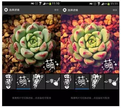 現(xiàn)在手機(jī)相機(jī)自帶濾鏡功能,拍照前可以自由選擇。另外,下載一兩個使用方便的圖片編輯軟件,隨時調(diào)節(jié)、修飾照片效果,讓照片更出彩。比如:美圖秀秀。