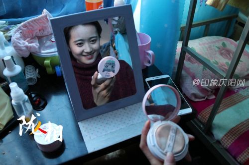 相比較于男生宿舍來說,王麗娜的宿舍干凈了很多。艱苦的條件和巨大的壓力也擋不住這個18歲的小姑娘愛美的腳步。坐在鏡子前的她不自覺就揚起了嘴角。