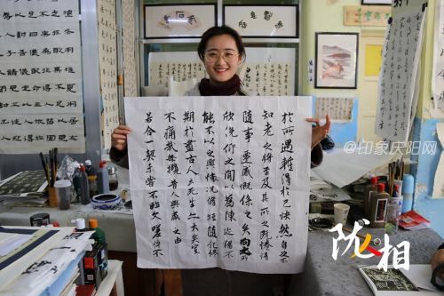 向記者展示自己的書法作品時,她依舊帶著自信的笑容。“藝考過程中經(jīng)歷了很多的心路歷程,之前覺得自己基礎(chǔ)不錯,可是來到蘭州后發(fā)現(xiàn)別人比你更強(qiáng)。有點難過和氣餒,不過我相信努力肯定會有收獲的。”
