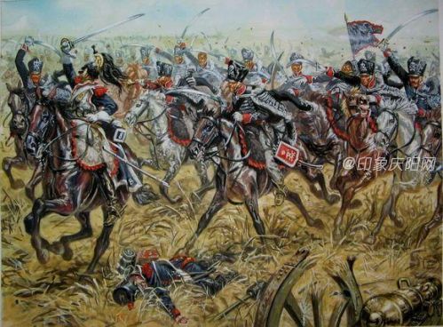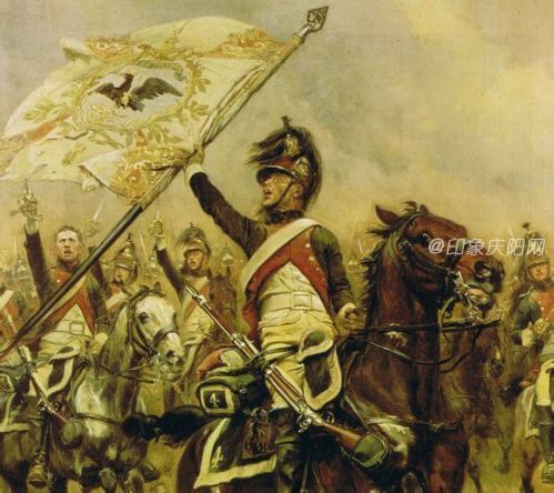 奪取敵軍鷹旗的法國龍騎兵。龍騎兵是一種特殊的騎兵,接受步兵訓(xùn)練,上馬機(jī)動下馬作戰(zhàn)