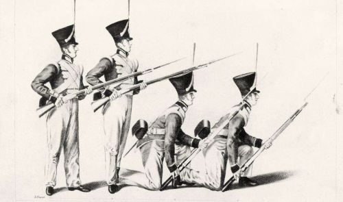 在“排隊(duì)槍斃”中,步兵是最為重要的兵種。一是其武裝與訓(xùn)練成本低,數(shù)量最多,二是其可以輸出最大的火力。步兵的主要武器是步槍——燧發(fā)槍、滑膛槍、前裝槍。這種槍命中率極低,且裝填過程非常繁瑣漫長,而且由于槍管較長,整個(gè)裝填過程射手必須保持站立。