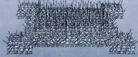步兵方陣示意,不管騎兵從哪個(gè)方向沖來都可以給予還擊