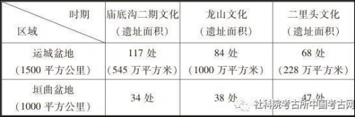這些數(shù)據(jù)顯示龍山文化顯然是晉南最為繁榮的時期,二里頭文化時期距離洛陽盆地越遠(yuǎn),就越有衰落的跡象。