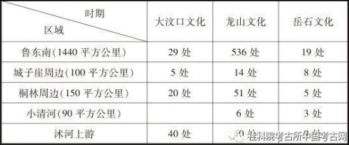 在黃河中下游地區(qū),山東目前有魯東南、魯北城子崖遺址周邊、桐林遺址周邊和小清河流域四組系統(tǒng)區(qū)域調(diào)查材料可以引用,魯中南沭河上游地區(qū)的調(diào)查可能不是全覆蓋的系統(tǒng)調(diào)查,但也屬于專題調(diào)查的成果,基本代表了山東全境。