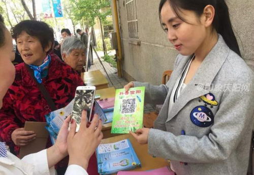 工作人員推廣“科普信陽”微信公眾號(hào)。