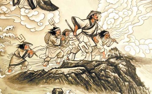 禹受命治水后,為了徹底戰(zhàn)勝水神共工,杜絕水患,他在茅山召集眾神,商討計策。在皋陶、棄、契、伯益等人的配合與協(xié)助下,在治水方法上吸取了鯀治水的“壅防百川,墮高堙卑”的失敗教訓(xùn),反其道而行之。他把“墮高堙卑”的方法改為“疏川導(dǎo)滯,鐘水豐物”,即疏通河道,開導(dǎo)川流阻滯,并利用澤、藪、洼地來蓄積洪水,既可防洪,又可為干旱季節(jié)提供水源,以供農(nóng)耕和飲用?!对娊?jīng)·商頌·長發(fā)》中有這樣的詩句:“洪水芒芒,禹敷下土方。”傳說大禹把息壤撒到洪水中,水中迅速出現(xiàn)陸地,有些地方甚至形成了高山。還有個說法是,大禹治水時,讓神龍走在前面,拿它的尾巴畫地,尾巴畫過的地方就形成了河床。他還讓一只黑色的大烏龜背著青泥走在后面,將太過深邃的溝壑填平。即使這樣,大地之上的河道依然不很暢通,大禹便開挖河道以疏通流水。