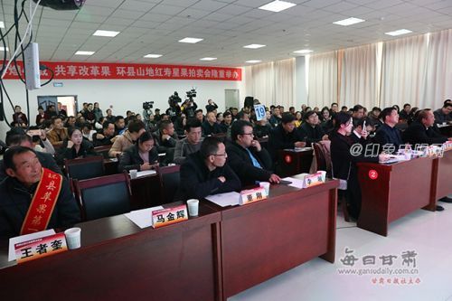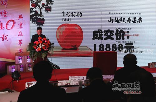 印象慶陽網(wǎng)訊:“18888元一次,18888元兩次,18888元三次!——咚!” 隨著一聲清脆的拍賣槌敲擊聲落定,在環(huán)縣電子商務(wù)孵化中心拍賣現(xiàn)場,環(huán)縣曲子鎮(zhèn)樓房子村村民王者奎家的一顆壽星果被環(huán)縣德偉電子商務(wù)公司成功競拍。這是11月20日環(huán)縣舉行“輝煌40年,共享改革果——環(huán)縣山地紅壽星果拍賣會”的精彩一幕。
