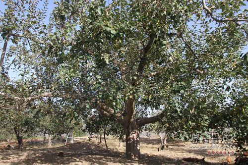 1978年,樓房子村栽植了近200畝蘋果,但因為思想觀念和技術(shù)雙重落后的原因,80年代,這些蘋果樹或死亡、或被砍伐,全村存活下來的果樹只有幾十棵,王者奎家的這棵壽星樹就是其中之一。
