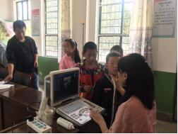 監(jiān)測(cè)現(xiàn)場(chǎng),五個(gè)監(jiān)測(cè)點(diǎn)隨機(jī)抽取8-10歲兒童210人,統(tǒng)一采用甲狀腺B超檢查,發(fā)現(xiàn)甲狀腺腫大7人,腫大率為3.33%。采集8-10歲兒童尿樣210份、學(xué)生家中鹽樣210份,采集小學(xué)所在轄區(qū)行政村孕婦及哺乳婦女尿樣100份、家中鹽樣100份,已送實(shí)驗(yàn)室正在檢測(cè)之中。抽取五年級(jí)學(xué)生碘缺乏病防治知識(shí)問(wèn)卷調(diào)查200人,知曉率60%;家庭主婦碘缺乏病防治知識(shí)問(wèn)卷調(diào)查50人,知曉率80%;發(fā)放碘缺乏病防治宣傳手冊(cè)1000本,一次性紙杯5000只,抽紙300盒,手提袋150個(gè)。