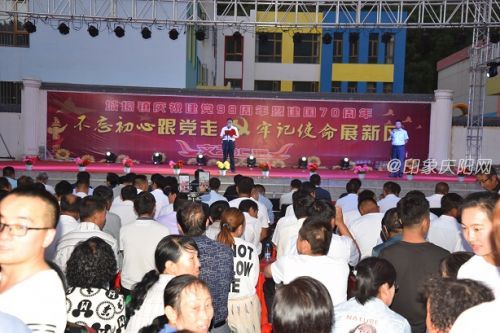 為隆重紀(jì)念中國(guó)共產(chǎn)黨成立98周年和建國(guó)70周年,7月1日晚20:00,城壕鎮(zhèn)在興城廣場(chǎng)舉辦了“不忘初心跟黨走  牢記使命展新風(fēng)”七一表彰大會(huì)暨文藝晚會(huì)。縣政協(xié)主席侯建營(yíng),縣委常委、組織部長(zhǎng)胡正平,縣委常委、宣傳部長(zhǎng)楊添翼及18個(gè)幫扶單位負(fù)責(zé)人應(yīng)邀參加,城壕鎮(zhèn)全體干部及部分群眾共1000余人參加了活動(dòng)。