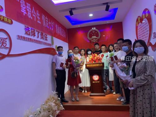 在頒證大廳,婚姻登記處頒證員將結(jié)婚證書鄭重地遞交給新人,鎮(zhèn)原縣民政局領(lǐng)導(dǎo)在現(xiàn)場一起學(xué)習(xí)了《喜事新辦、婚事簡辦》的倡議書,發(fā)放了《抵制高額彩禮 革除婚嫁陋習(xí)》等宣傳資料,向各位新人送上玫瑰花束并致以美好祝福,希望新人們互敬互愛,攜手創(chuàng)造幸福家庭。