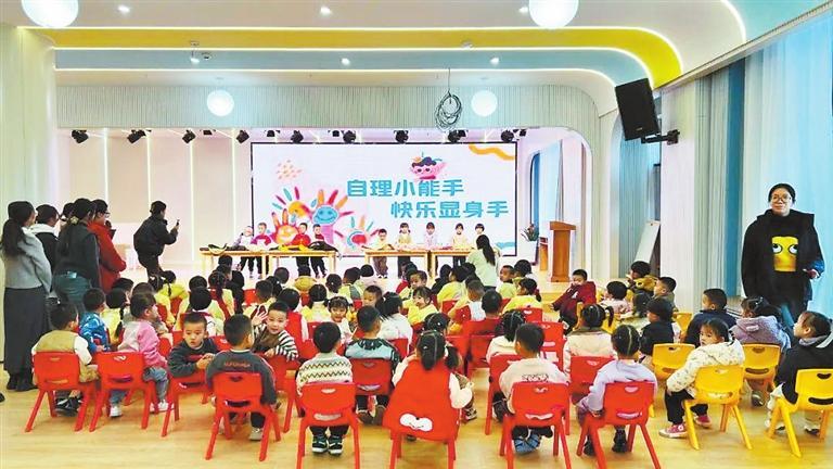 金川區(qū)第五幼兒園開展“自理小能手”比賽。 (本文圖片均由金昌市融媒體中心提供)