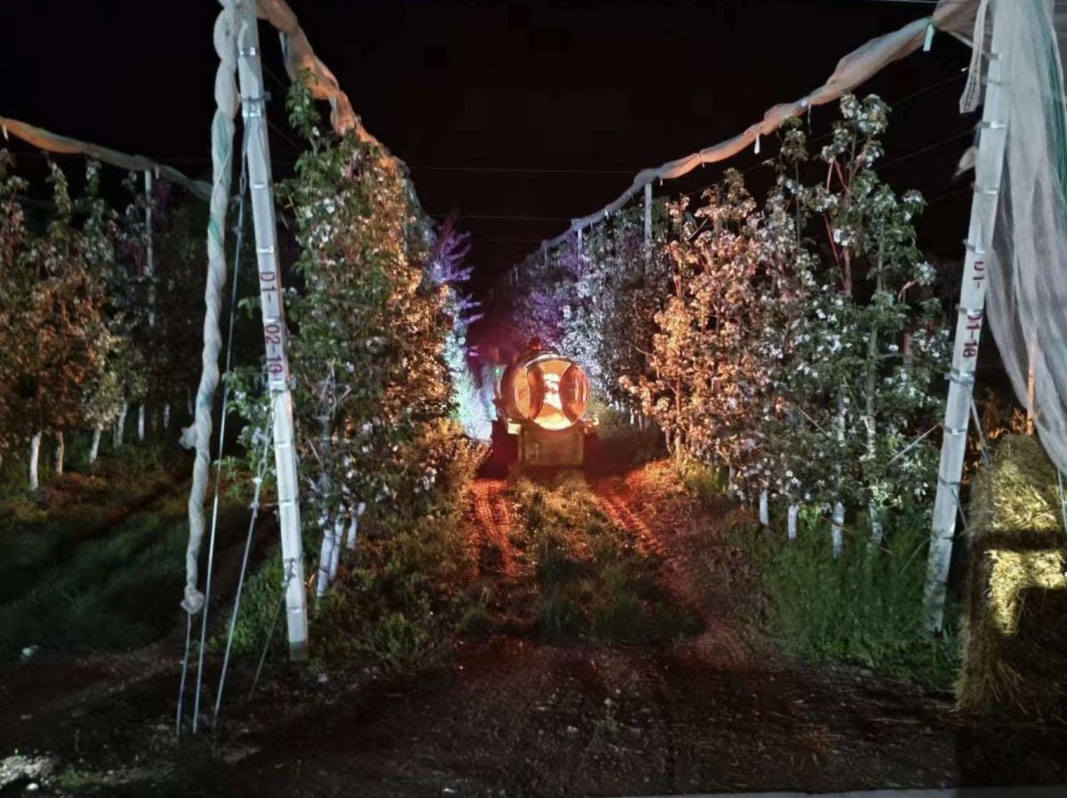 面對災害天氣,寧縣堅持預防為先、靠前部署,依托與氣象部門常態(tài)化會商機制,精準推送氣象預警信息,提前下發(fā)防控指導意見,開展技術培訓,指導果農(nóng)花前灌水、噴施營養(yǎng)液,增強樹體抗凍能力。建立領導干部分區(qū)包抓、技術人員下沉一線機制,晝夜值守、逐園督導,確保責任到人、防控到位。防災一線,立體化防控模式顯實效,全縣統(tǒng)籌啟用高空防霜機158臺、加熱防凍爐350臺,組織無人機68架次開展高空擾流作業(yè),打破冷空氣沉積;因地制宜布設熏煙點,以秸稈、鋸末暗火濃煙提溫,實現(xiàn)“空中擾流、地面增溫”協(xié)同發(fā)力,防控面積達15萬畝,對-2℃以上低溫防控效果顯著。